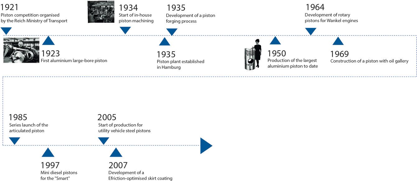 Without the drive technology element of a piston, the industrial revolution may have gone a different way. Even the invention of the steam engine is based on the principle of converting the energy generated with steam to mechanical energy through the upstroke and downstroke action. This principle has stood the test of time in combustion engine technology to this day: In modern engines, the piston converts the thermal energy created by the ignited fuel mixture into driving power.