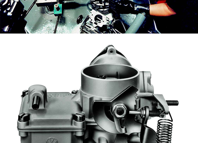 Après la deuxième Guerre Mondiale, le développement des carburateurs fit un bond en avant. L'amélioration du confort de route et la puissance étaient les objectifs principaux, aux côtés de la réduction de la consommation de carburant ou des gaz d'échappement. C'est ainsi que les carburateurs double corps furent intégrés pour une puissance du moteur supérieure ; en 1959, dans la Coccinelle, un carburateur avec système de démarrage automatique remplaça le starter.